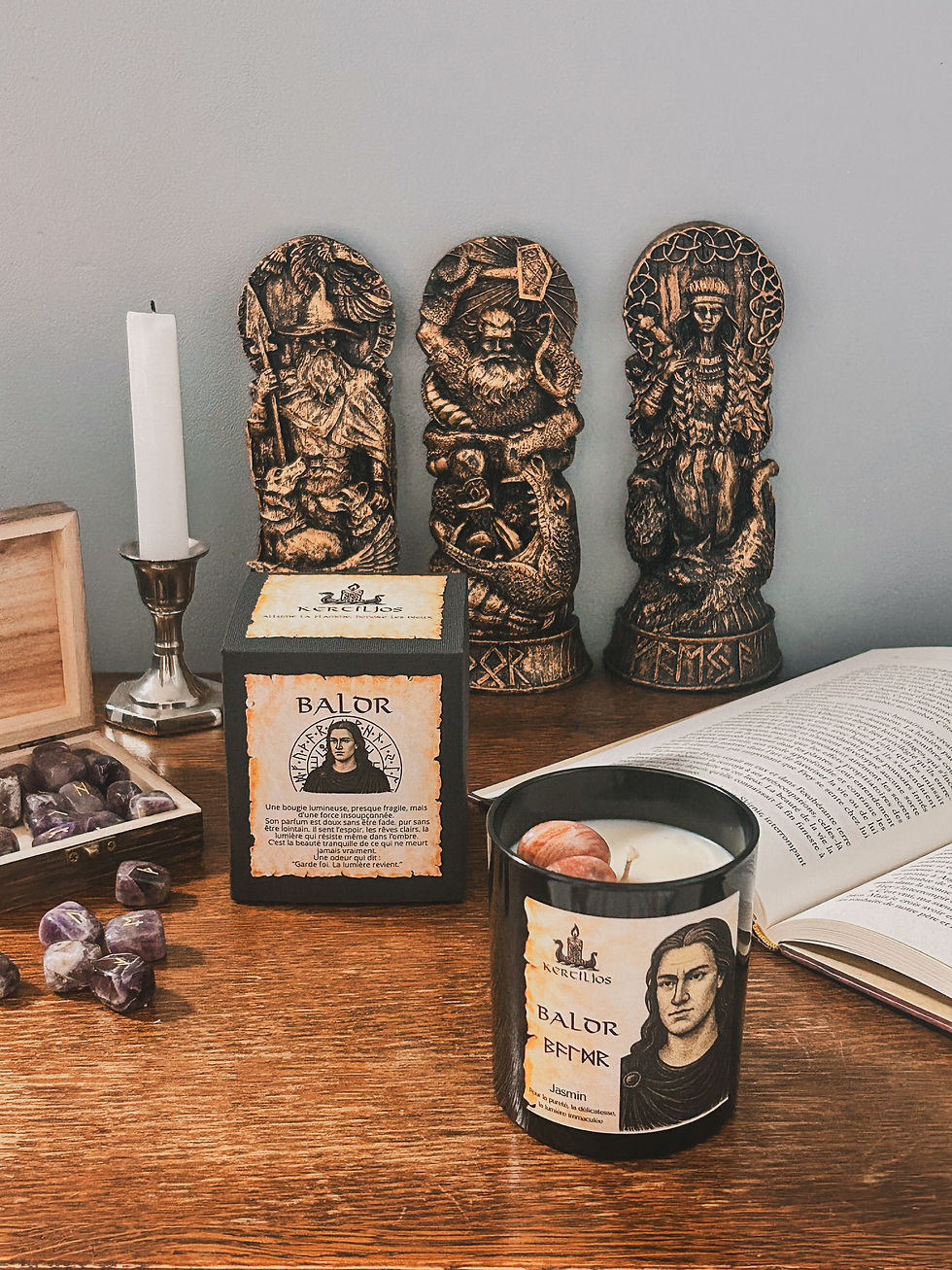 KERTILJOS n’est pas qu’un artisanat, c’est une invitation à rallumer la flamme des mythes nordiques chez soi, sur son autel ou au creux de son foyer. Chaque bougie incarne un dieu scandinave, veilleuse d’un passé vibrant, et diffuse des parfums choisis pour incarner l’essence profonde des divinités viking : musc, ambre, lavande, bois de oud, autant de senteurs comme une offrande à la mémoire.